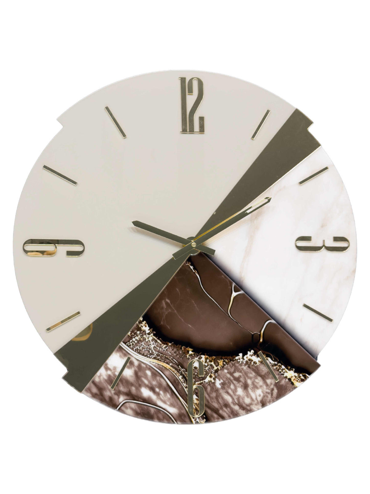 Arricchito con dettagli in plex specchiato e lancette in metallo.