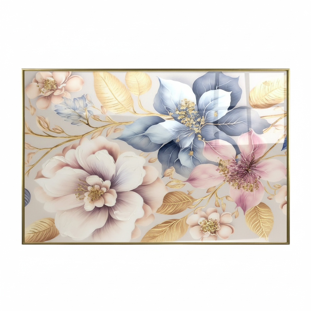 Quadro con soggetto floreale, immagine realizzata con stampa su carta polimerica di alta qualità applicata su pannello in mdf ad alta intensità.