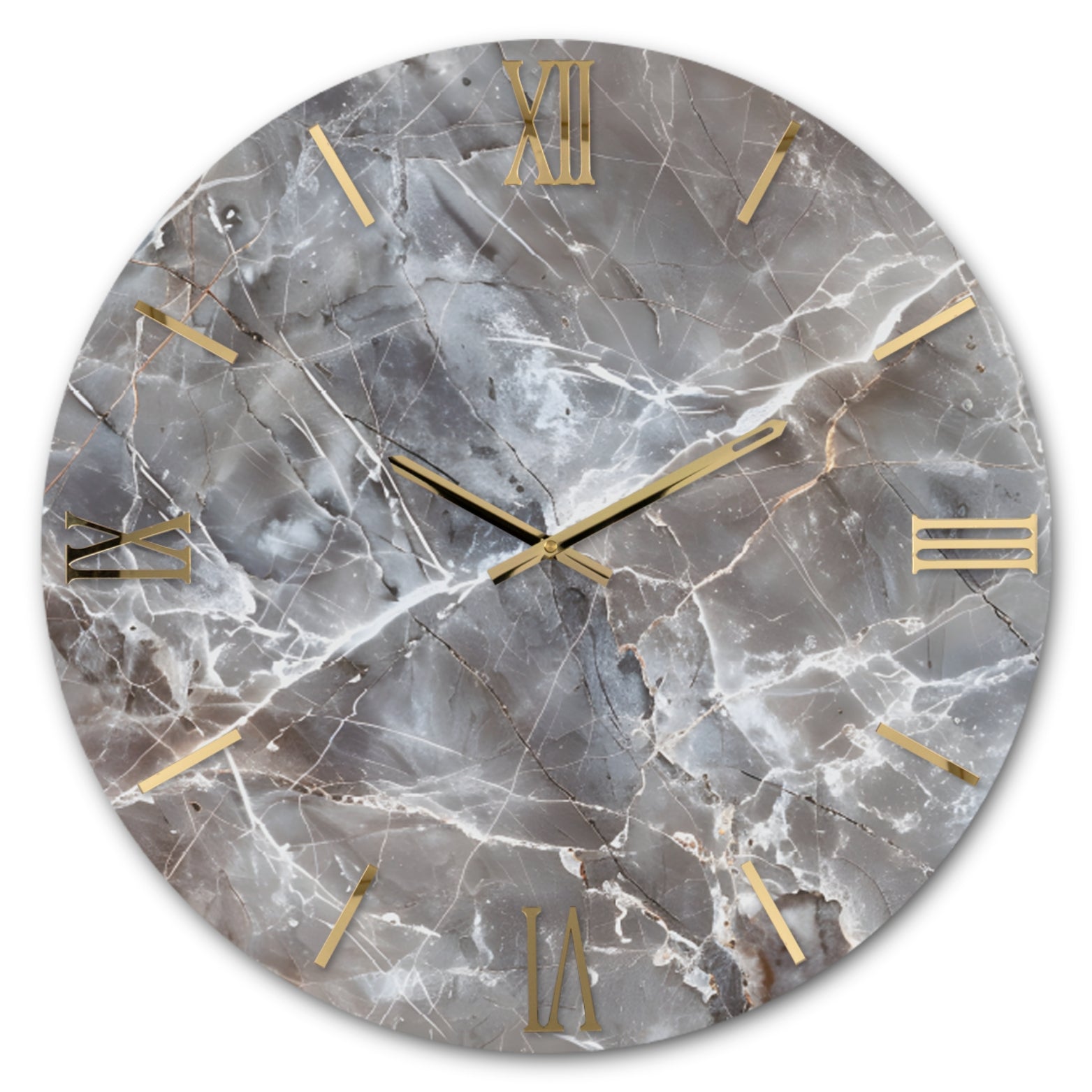 Orologio circolare con quadrante lucido, decorato a mano con foglia oro/argento e numeri sovrapposti in Plex lucido con effetto specchio.