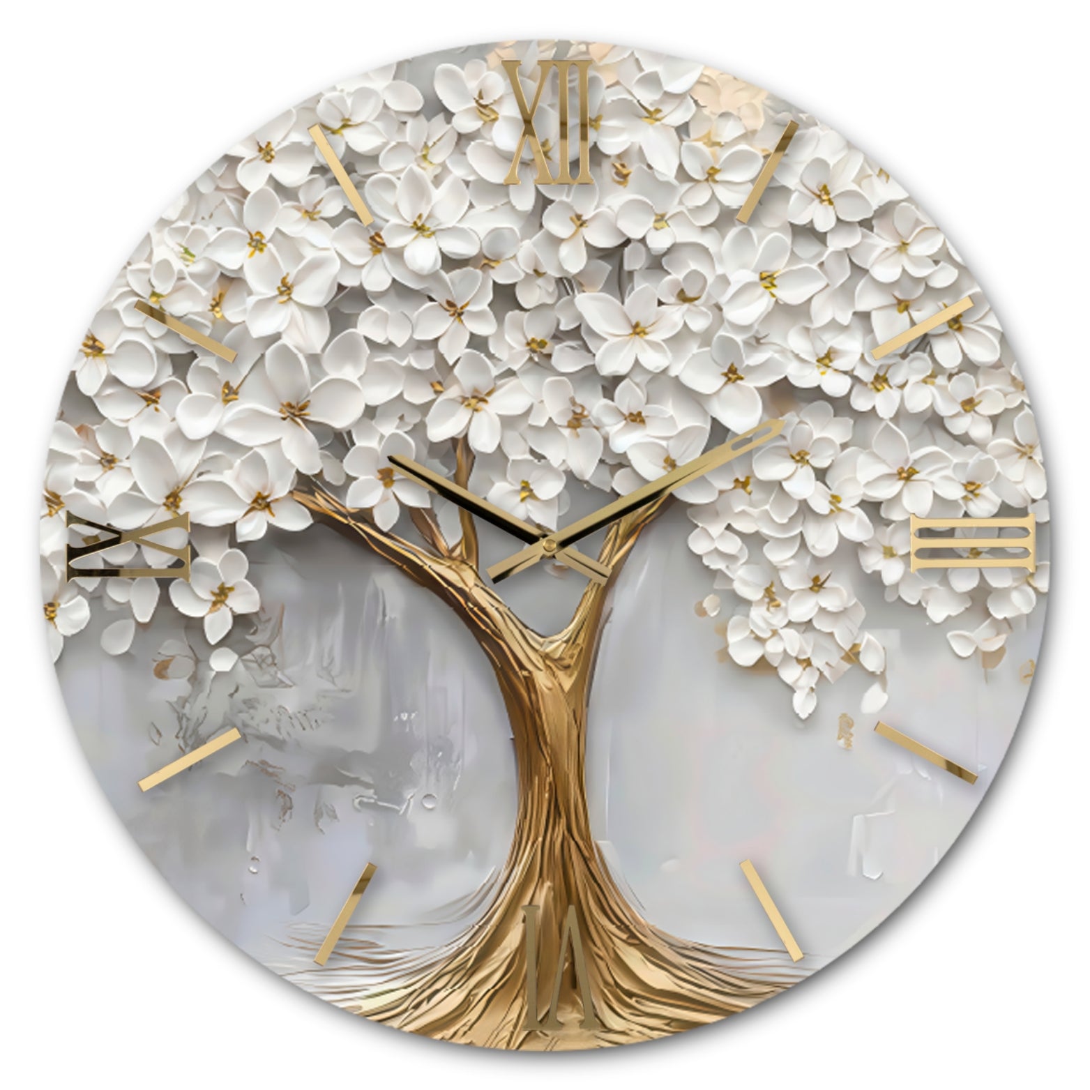 Orologio circolare con quadrante lucido, decorato a mano con foglia oro/argento e numeri sovrapposti in Plex lucido con effetto specchio.